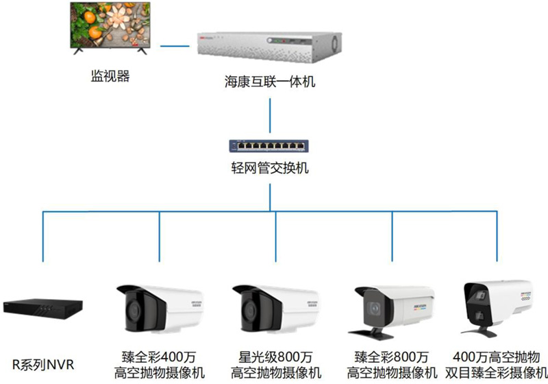 高空抛物可视化管理方案通过高空抛物专用摄像机来实现图像的高清采集,通过交换机,将信号稳定传至后端录像机,实现实时预览、存储、回查等其他功能。
